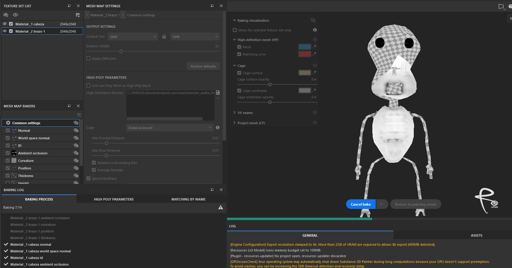 Monster Araña Monster Araña , concep art ,modelo lowpoly bajo poligonaje malla en 3DSmax , detalle en Zbrush , texturas 4k en Substance painter , proyección y presentación en Unreal Engine 5 , render editado en Adobe premiere video .